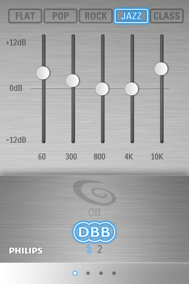 iPhoneをFidelioに接続すると最初にアプリケーションのインストールが即され、App Storeに自動的にアクセスし、インストールできる。このアプリがなかなかに優れもので、単なる再生アプリではなく専用のイコライザーとしても動作するのだ。イコライザーはプリセット4種類にBassを効かせるDBBが2種類、さらにスライダーを自分で設定して独自の調整も可能だ。